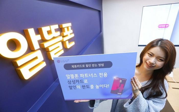LG유플러스는 삼성카드와 제휴를 통해 U+알뜰폰 전용 할인혜택을 제공하는 제휴카드 ‘U+알뜰폰 파트너스 삼성카드’를 출시한다고 17일 밝혔다.U+알뜰폰 파트너스 삼성카드는 LG유플러스 망을 이용하는 모든 알뜰폰 사업자의 요금제를 이용하는 고객이 전월 이용실적에 따라 최
