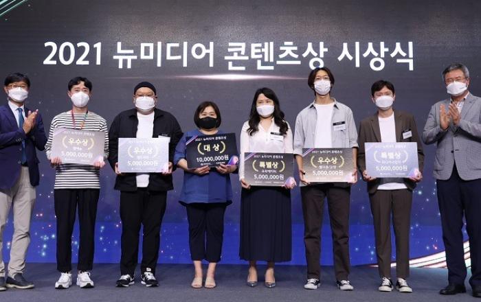 문화체육관광부가 주최하고 한국콘텐츠진흥원(이하 콘진원)이 주관하는 ‘2021 뉴미디어 콘텐츠상’ 시상식이 ‘국제방송영상 콘텐츠마켓 2021 (BroadCast WorldWide, 이하 BCWW 2021)’와 연계하여 9월 9일 온라인 개최됐다.◆ 뉴미디어 시장을 선도하