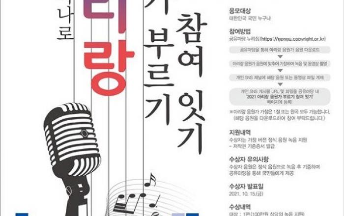 도쿄올림픽을 앞두고 새롭게 태어난 ‘2021 아리랑’이 대한민국을 응원한다.성윤용 여주대학교 교수가 총감독을 맡아 편곡·개사하고 가수 윤도현이 노래해 공개했는데, 음원제작 참여자와 가수 모두 저작권을 국가에 기증해 국민 누구나 자유롭게 활용할 수 있다.▲ 2021 아리