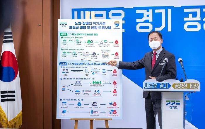 약 7년간 576회에 걸쳐 시설 종사자 인건비 9천여만 원을 횡령해 생활비 로 사용하는 등 사회복지사업법을 위반한 사회복지시설 법인대표와 시설장 6명이 경기도 공정특별사법경찰단에 적발됐다.김영수 경기도 공정특별사법경찰단장은 24일 경기도청에서 기자회견을 열고 지난 4월