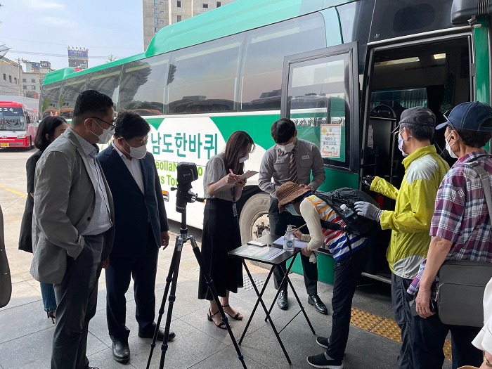 특히 관광객의 안전한 여행을 위해 시범 운행 첫날인 14일 김병주 전남도 관광문화체육국장과 채형옥 금호익스프레스(주) 상무가 직접 나서 차량 출발 전 방역수칙 준수 여부, 관광객 불편 사항 등을 꼼꼼히 점검했다.