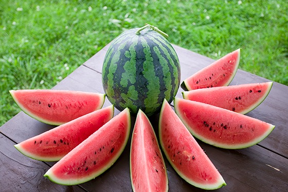 수박은 약 90%가 수분으로 이루어져 섭취 시 수분 공급에 큰 도움이 되며, 과즙에는 인체에 유익한 전해질로 가득 차 있어서 열사병 예방에 도움이 된다.