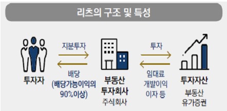 리츠는 주식회사의 형태로 다수의 투자자로부터 자금을 모아 부동산에 투자하고 수익을 돌려주는 부동산간접투자 기구다.