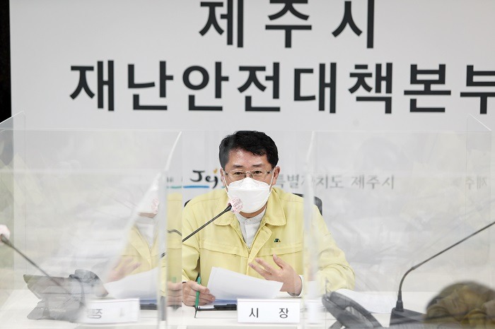 제주시는 안동우 제주시장 주재로 7월 16일 오후 5시, 제주형 사회적 거리두기 3단계 격상에 따른 상황대책회의를 개최하였다.
