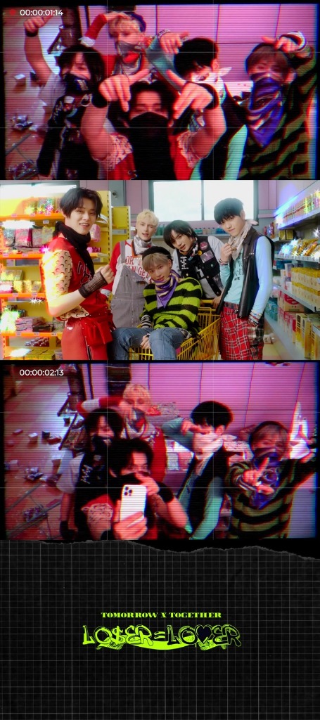 투모로우바이투게더는 마스크를 쓰고 이 세상에 존재하지 않는, 키치하고 반짝이는 아이템이 가득한 편의점에서 등장한다. 선전포고를 하듯 CCTV를 당당하게 응시하고, 셀피를 찍는 대담함을 보인 다섯 소년은 각종 아이템을 카트에 쓸어 담는다.