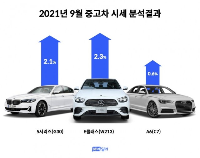 헤이딜러가 공개한 9월 중고차 시세 자료에 따르면 반도체 부족으로 신차 출고 옵션 삭제 및 프로모션이 축소되고 있는 주요 수입 중고차 모델의 시세가 모두 상승한 것으로 나타났다.