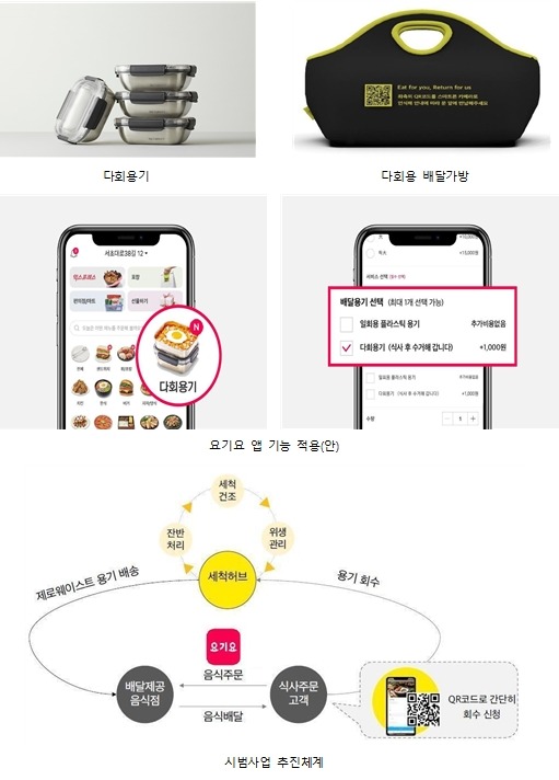 소비자는 요기요 앱을 통해 다회용기 사용 음식점을 선택해 주문할 수 있다. 주문하면 다회용기와 가방에 담긴 음식이 배달된다. 식사를 마친 뒤엔 빈 다회용기를 다시 가방에 담아 집 앞에 놓고 가방에 부착된 QR코드로 회수 신청을 하면 된다.