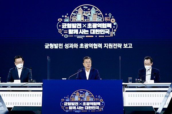 문 대통령은 “초광역협력이라는 새로운 모델이 성공하고 확산된다면, 수도권 집중 추세를 반전시키고 골고루 잘사는 대한민국으로 나아갈 수 있다”고 단언했다.