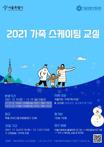 서울시와 서울시체육회가 공동으로 주최하는 '2021 가족 스케이팅 교실'은 내달 18일부터 19일까지 양일간 양천구 목동 아이스링크장에서 진행된다.