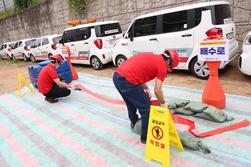 인천의 한 건물종합관리업체 메리트아이티(주)는 관리직원대상으로 침수대비 배수펌프 사용방법을 정기적으로 교육하고 있어 위탁관리직원의 현장대처능력이 얼마나 중요한지 강조하고 있다.